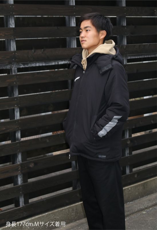 防寒に最適の中綿入り、フード付きウォーマージャケット!!