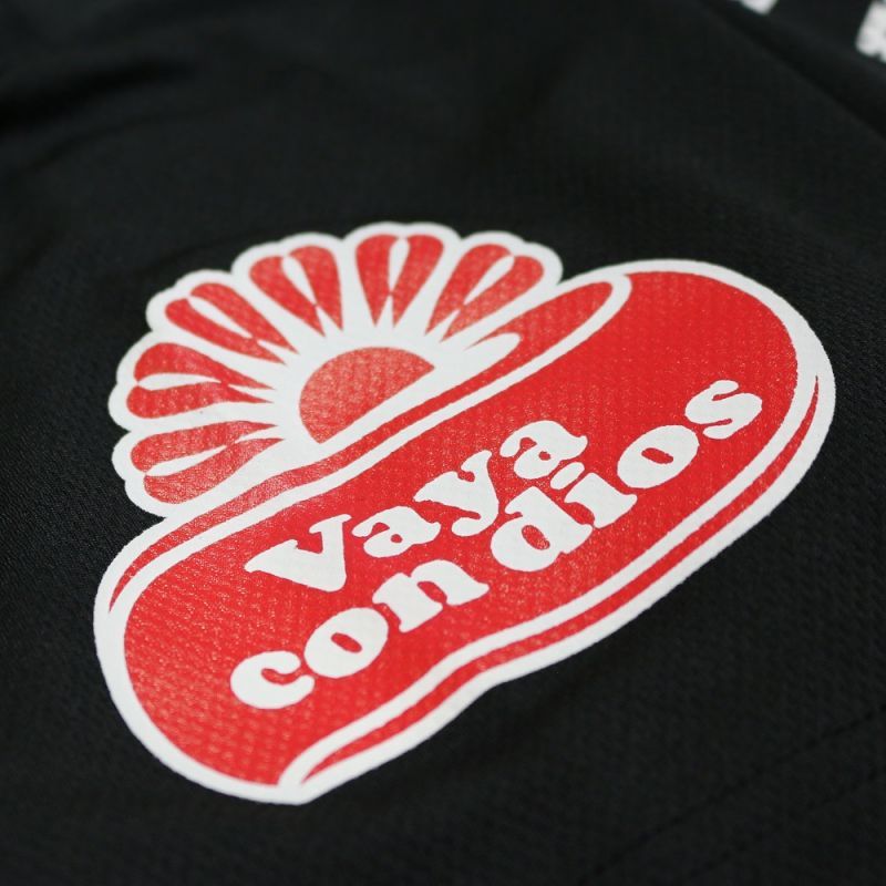 南米サッカーの雰囲気を醸し出すロゴプリント満載のメッシュポロシャツ