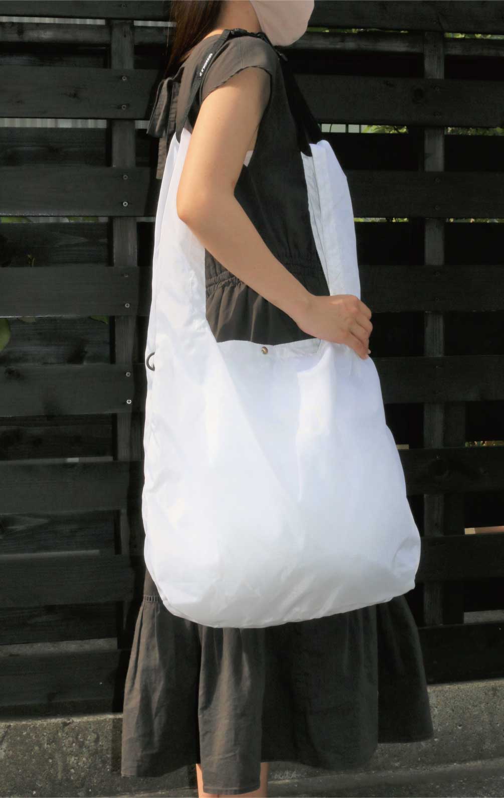 付属のショルダーストラップで2種類の使い方ができ、内ポケットにたたんでポケッタブルとして収納できるマルチエコバッグ。