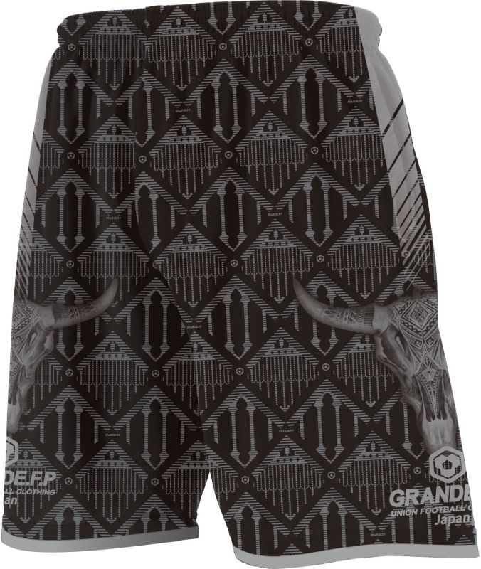 GRANDE.F.P定番の.吸汗速乾性に優れたドライメッシュ素材を使用し、ダマスク柄にバッファローと様々なロゴプリントでデザインされたインパクトを与えること間違いなしのプラクティスパンツ。
