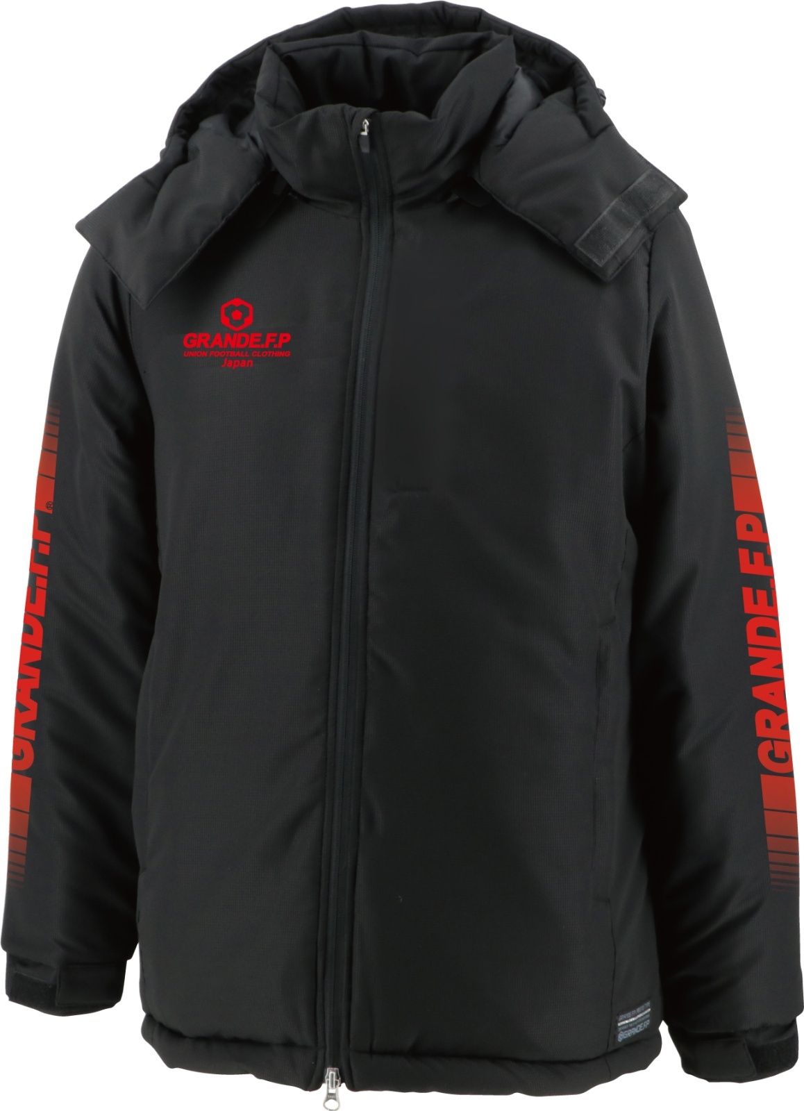 【BIGサイズ対応】GRANDE.F.P.ハイパーロゴフーデッドウォーマーハーフジャケット ブラックxレッド [GFPH21599 0935 BLK/RED]